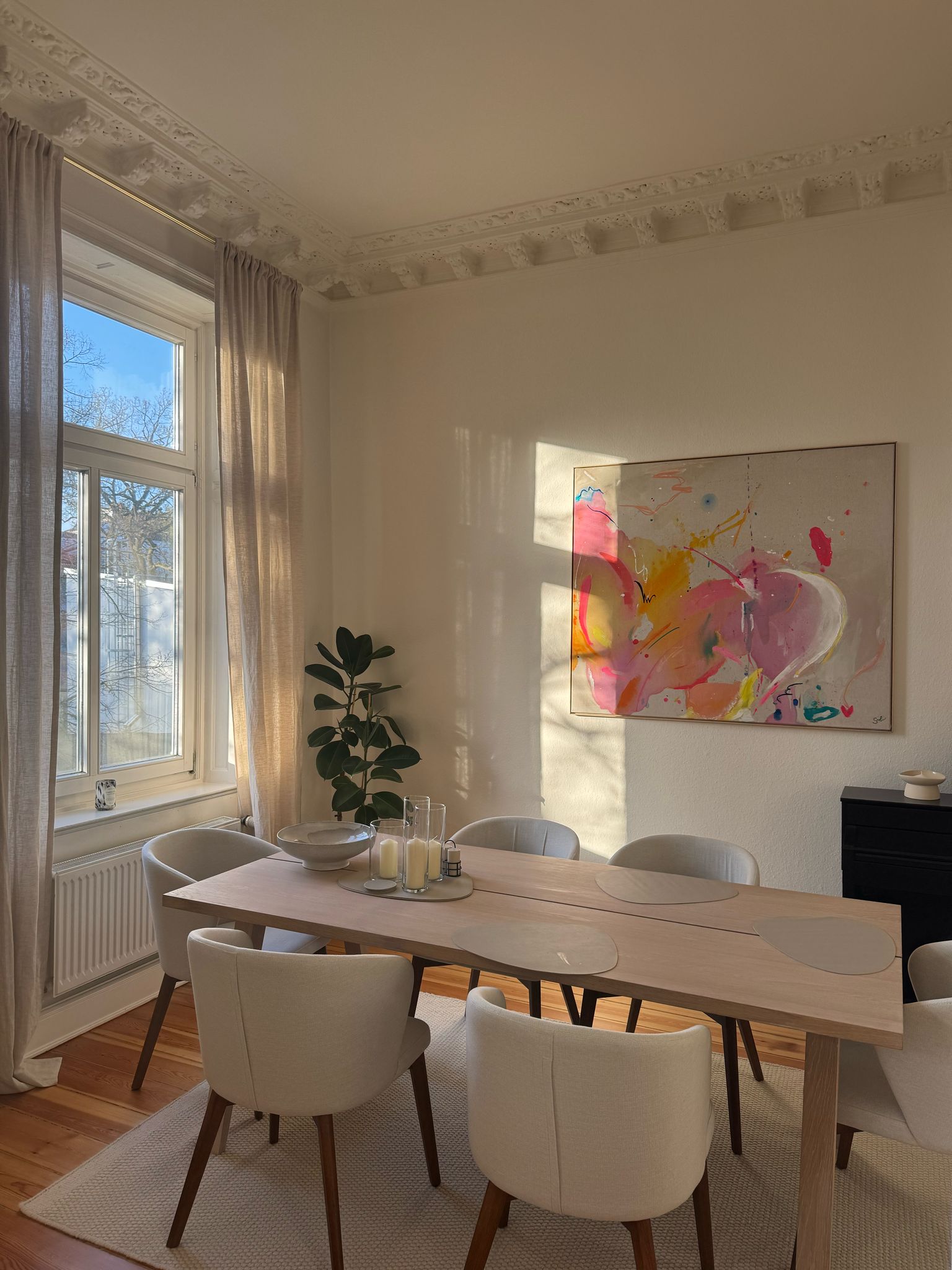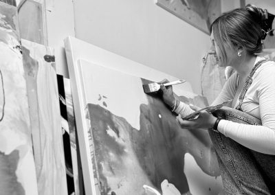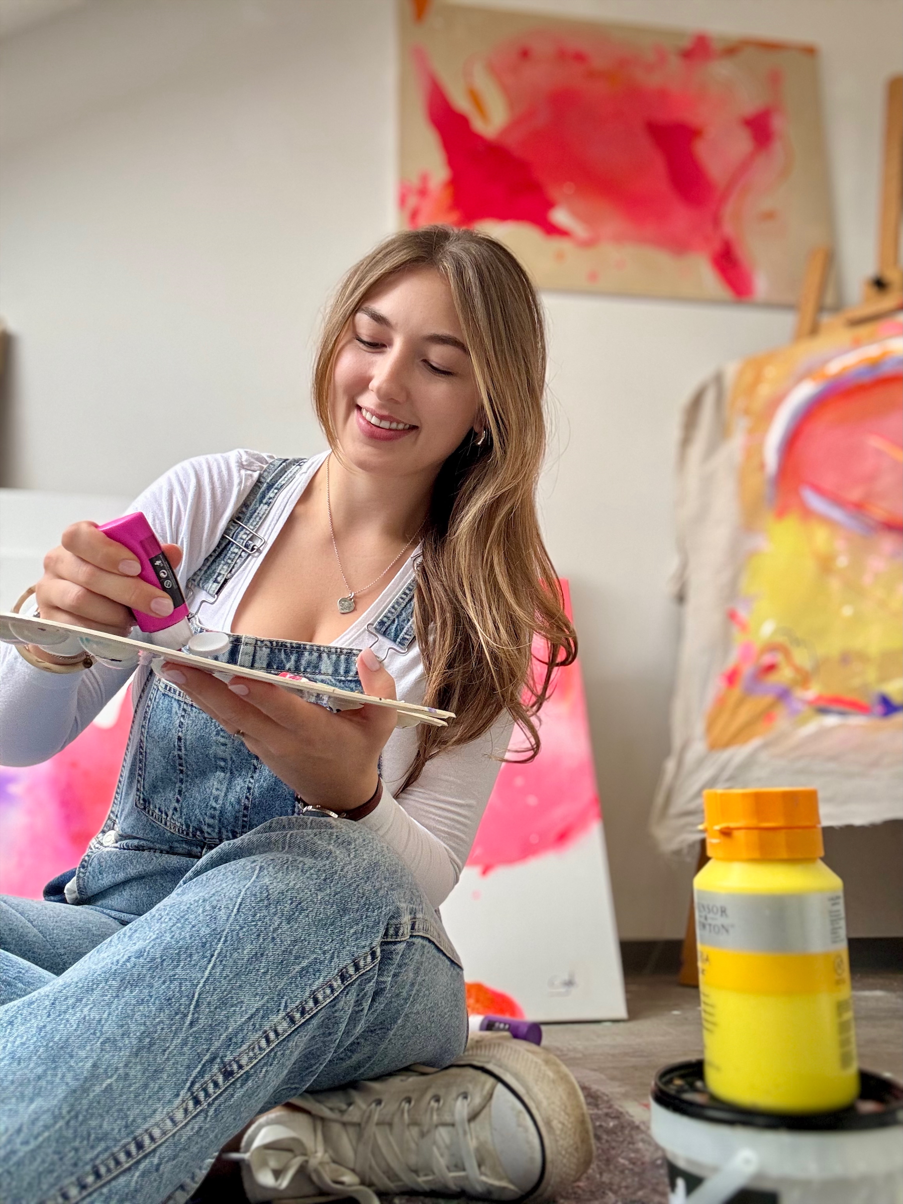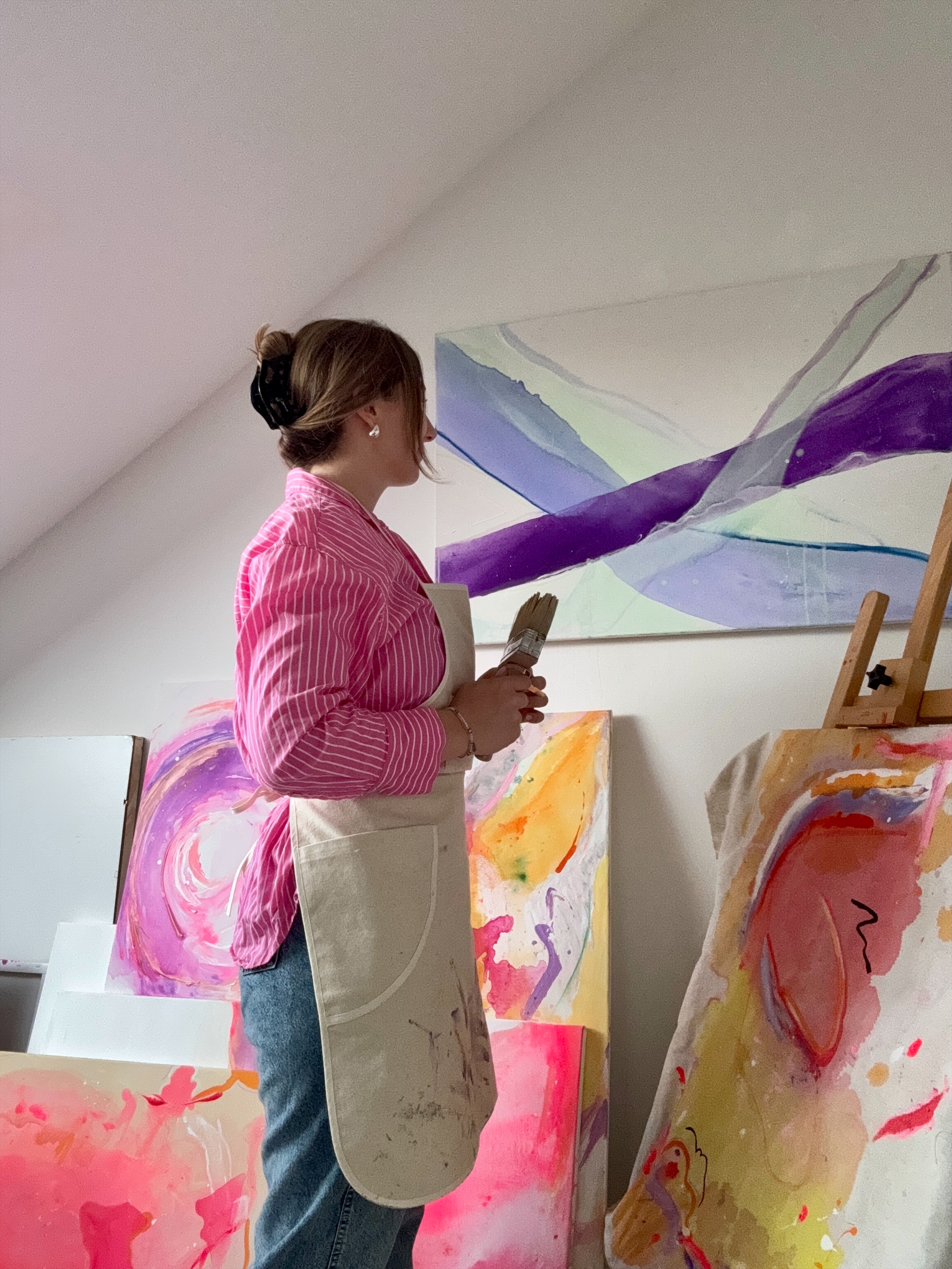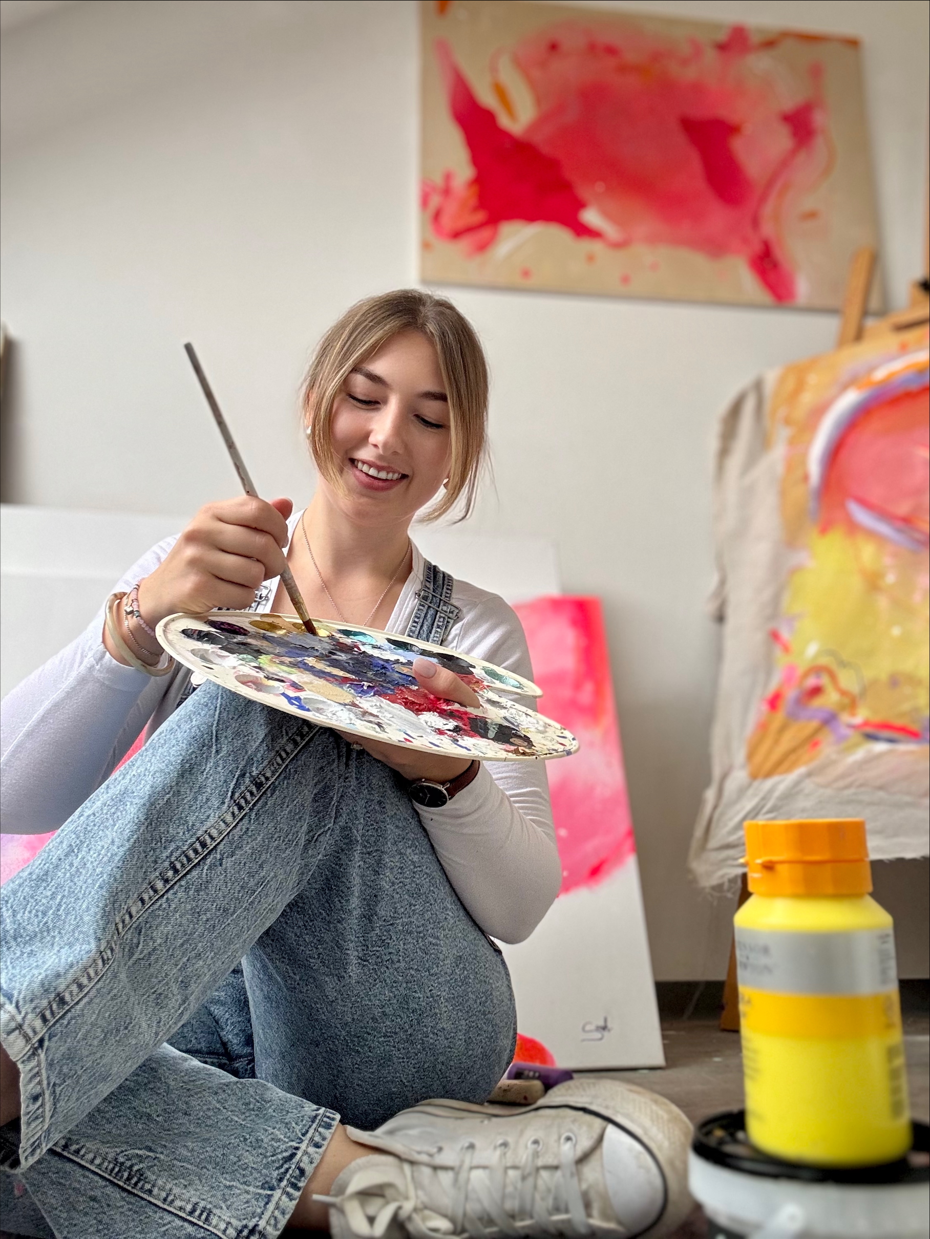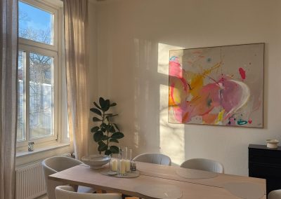 Als gelernte Floristin bringe ich nicht nur ein feines Gespür für Ästhetik und Farbharmonie mit, sondern auch handwerkliches Geschick und tiefes Materialverständnis. Die Verbindung von Gefühl und Technik, Intuition und Struktur prägt meine Arbeit, auf Leinwand ebenso wie im Raum.