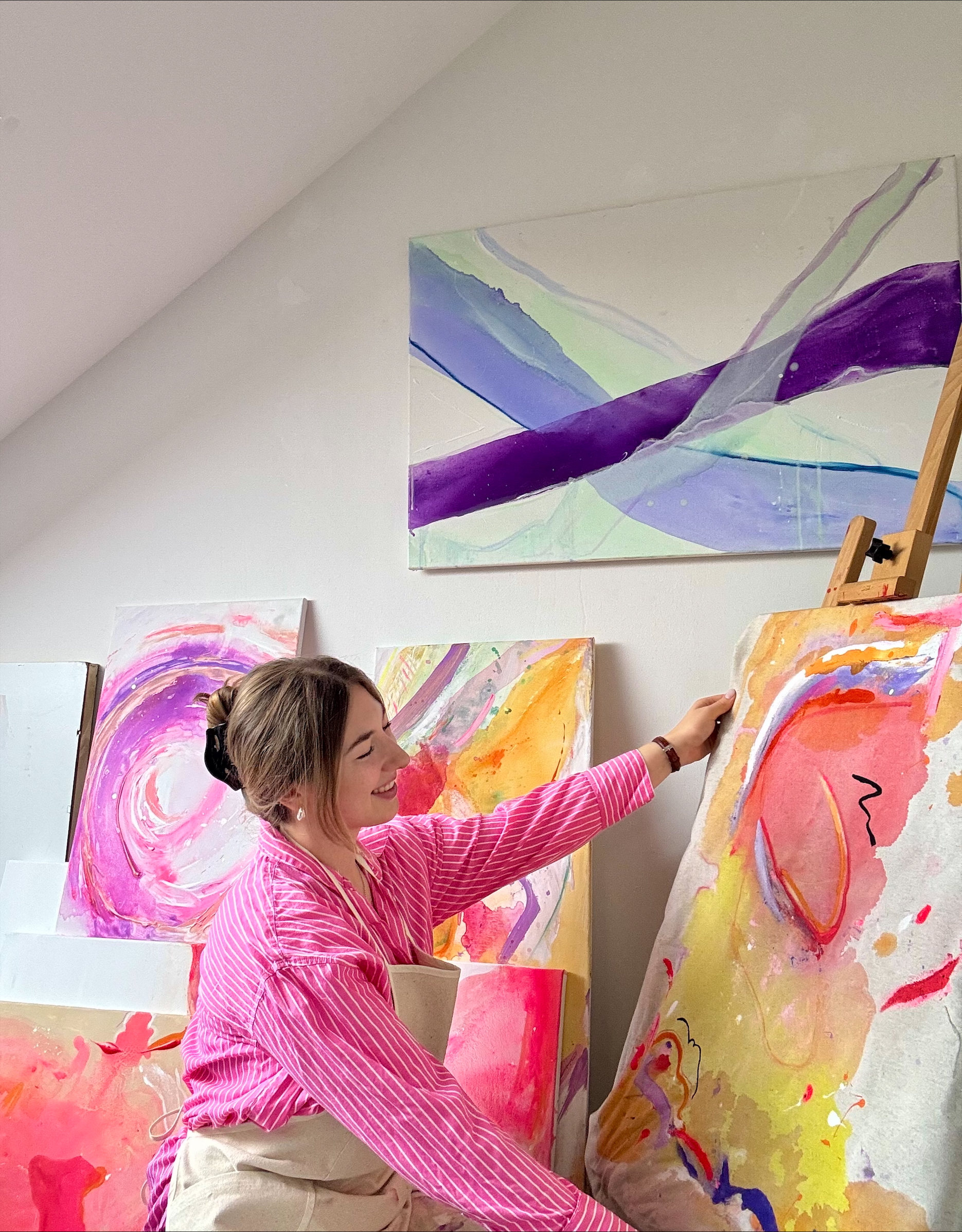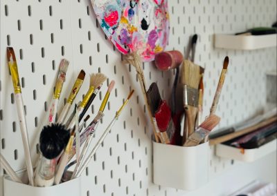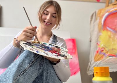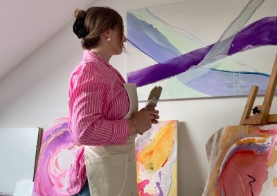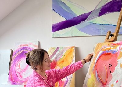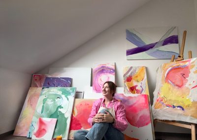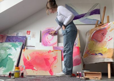Ich bin autodidaktische Künstlerin mit Herz und Hand, mit eigener Ausstellungserfahrung, einer wachsenden Community auf Instagram und ersten erfolgreichen Verkäufen. Mein Atelier in Großgoltern ist der Ort, an dem Ideen Form annehmen.